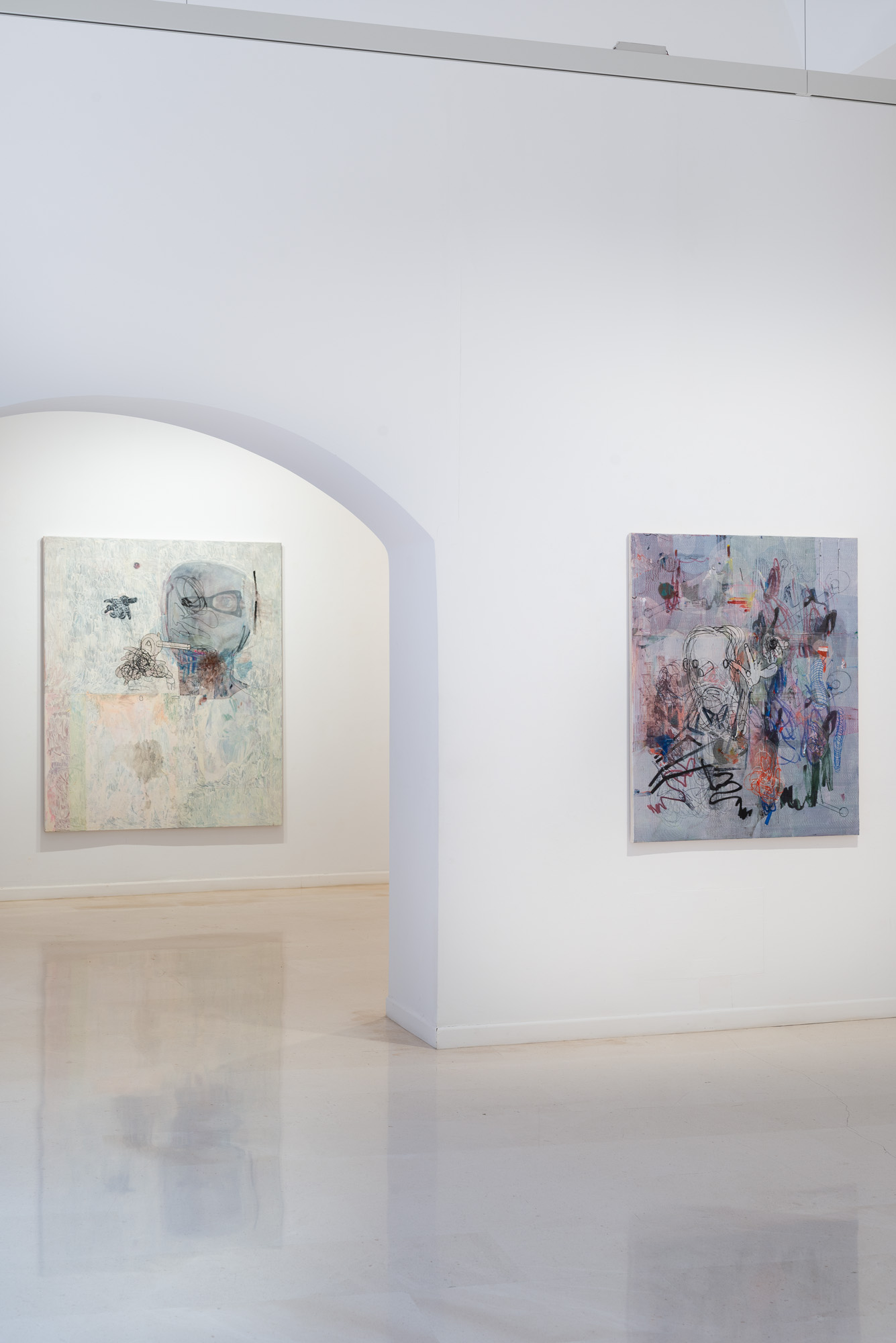 Muchas de las nuevas obras poseen una cualidad particular de estratificación. Funcionan como palimpsestos: superficies en las que se superponen diferentes capas del proceso pictórico.