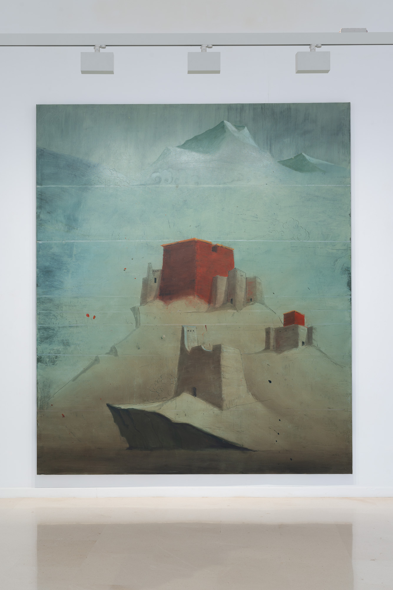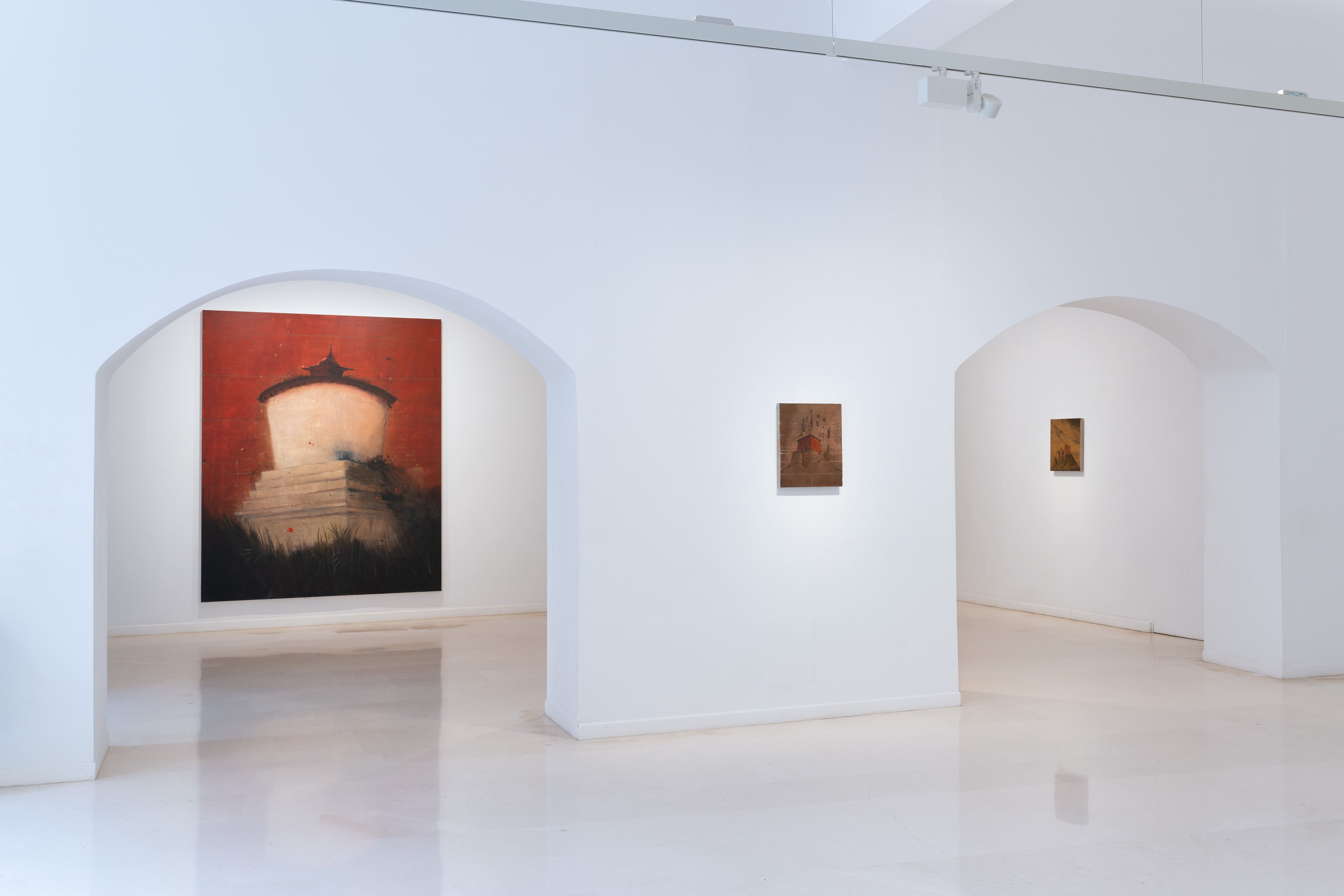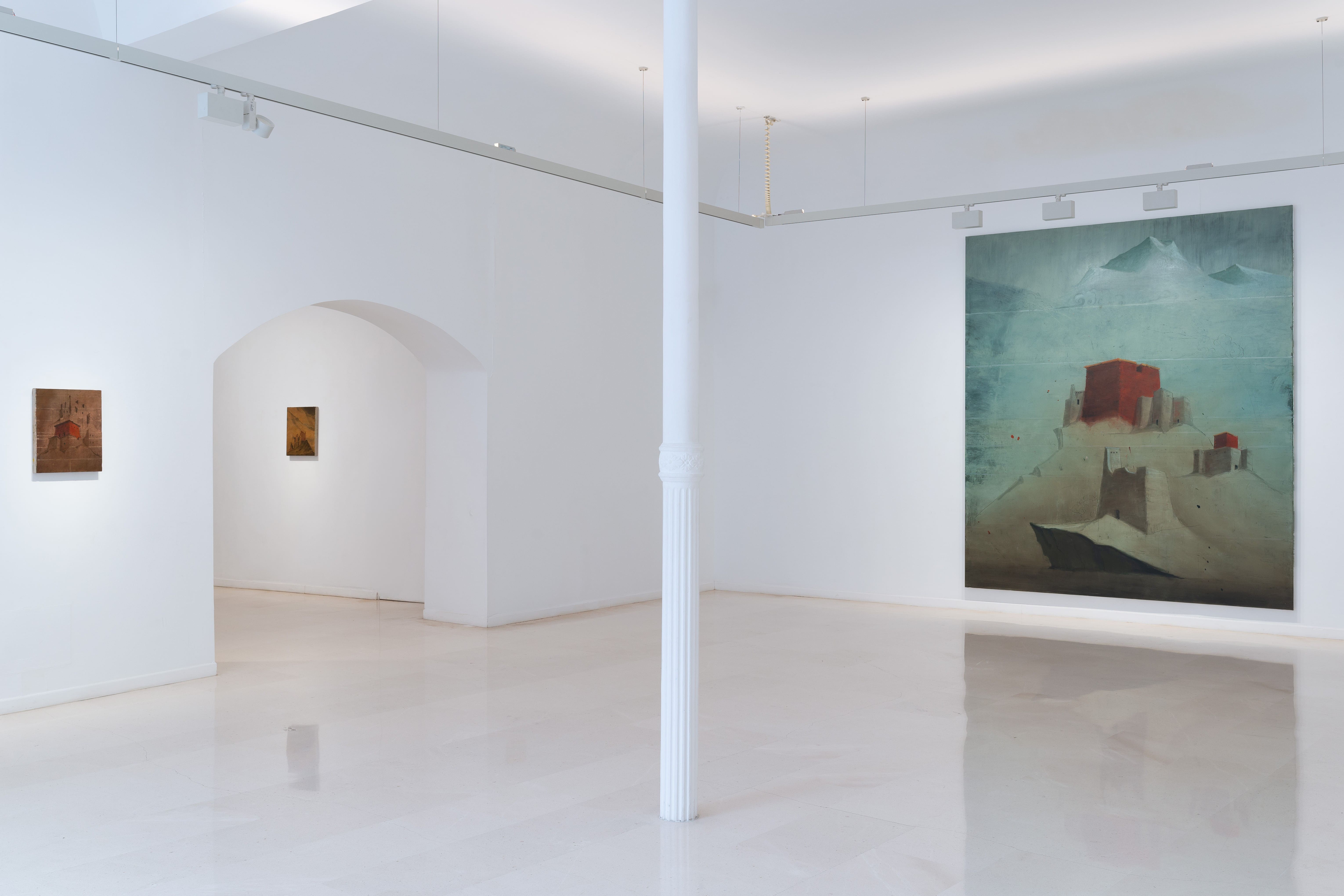 Las pinturas presentes en la exposición Ni mundo interior ni mundo exterior de Alejandro Campins en la Galería Pelaires, ofrecen una alternativa a este fenómeno. En términos compositivos, las obras expuestas siguen un formato básico de estructuras arquitectónicas aisladas y paisajes escarpados. Las estructuras se encuentran en diversos estados de ruina, deterioro y destrucción; los paisajes están despejados y bastante desolados. Podemos reconocer las estructuras como estupas, o estructuras religiosas y simbólicas budistas. Sabemos por los títulos de las obras, pertenecientes a la serie Tíbet, que el paisaje es el del Himalaya, concretamente la región geográfica conocida popularmente como el "Techo del Mundo", la meseta más alta y extensa del mundo.