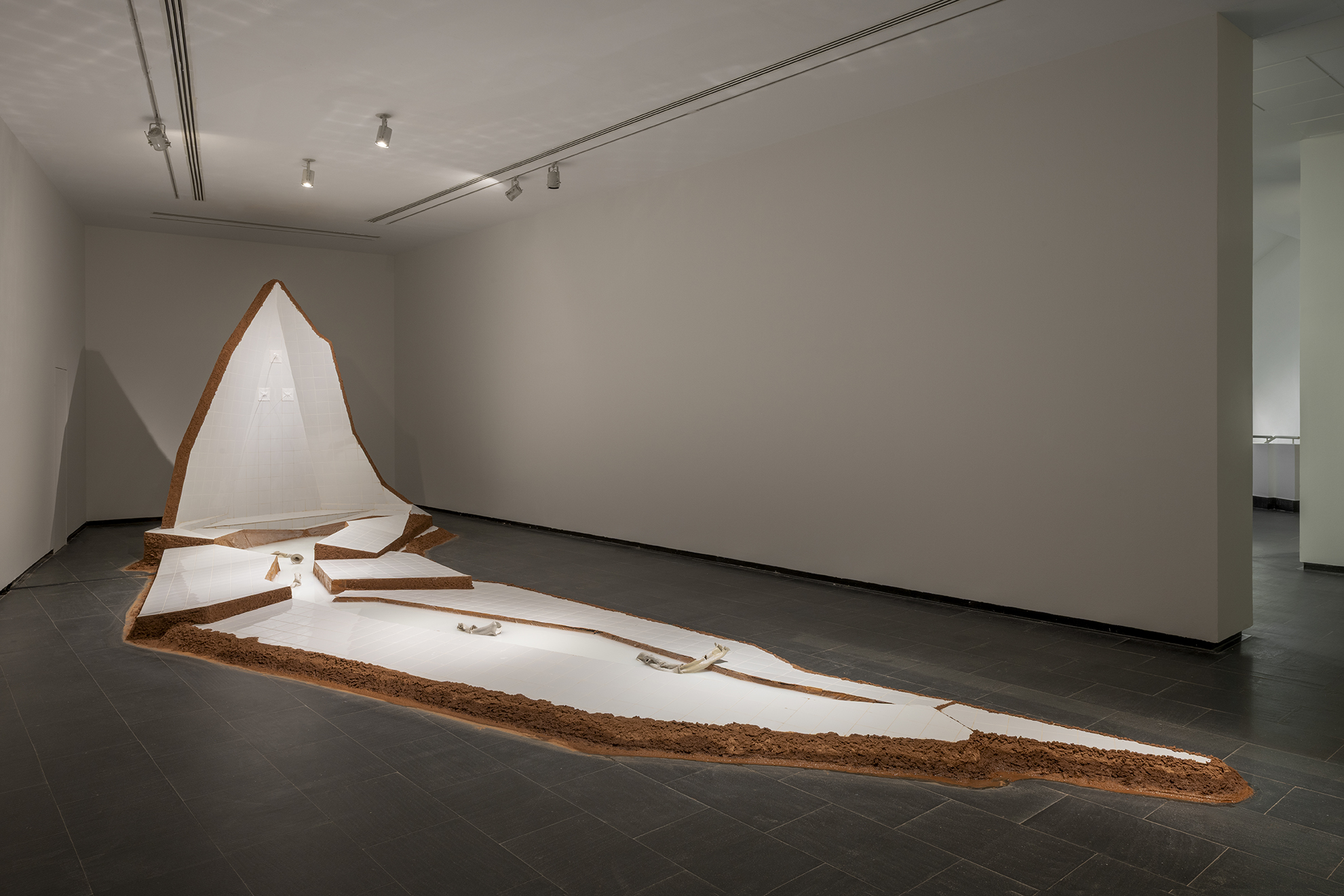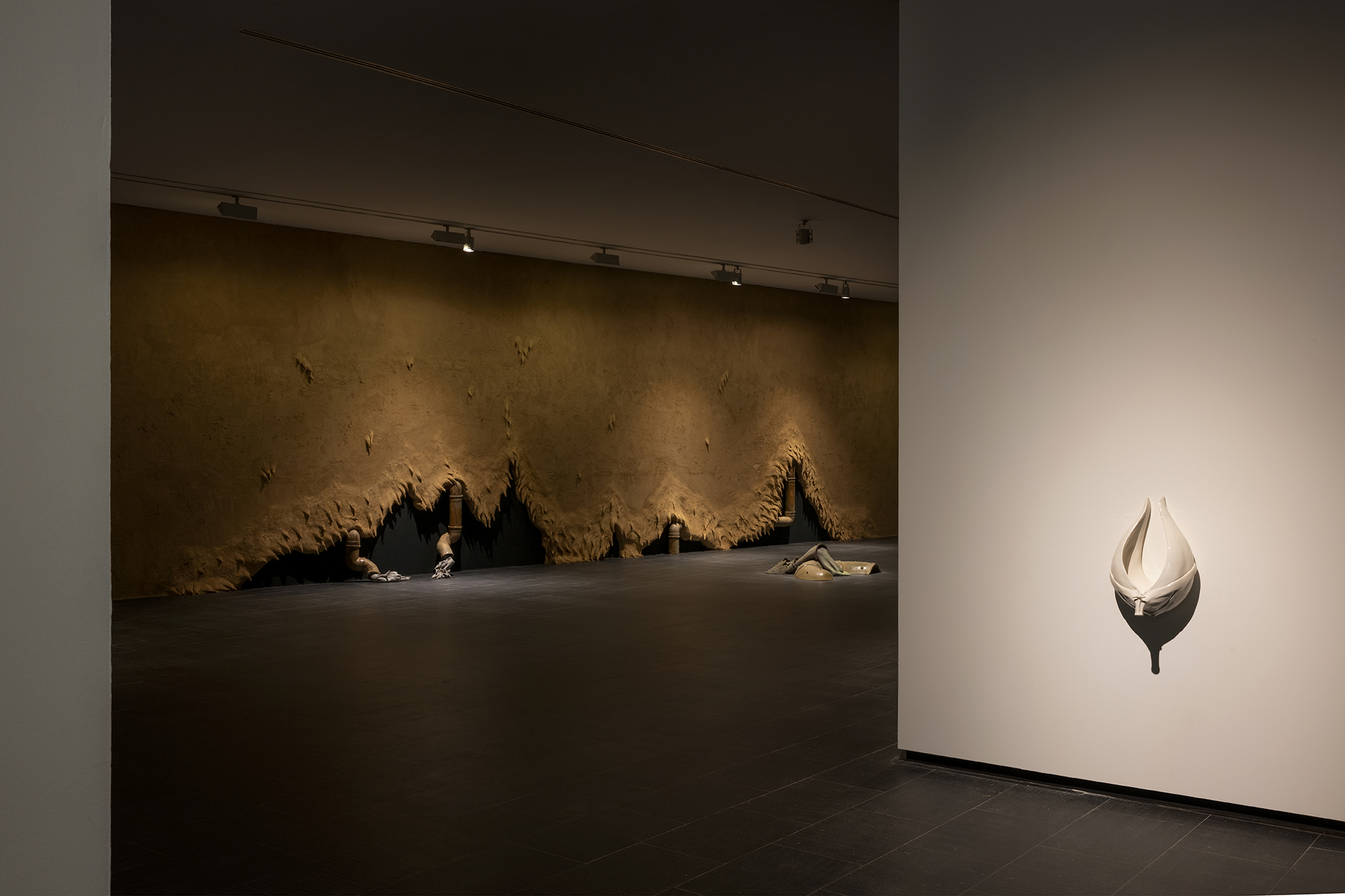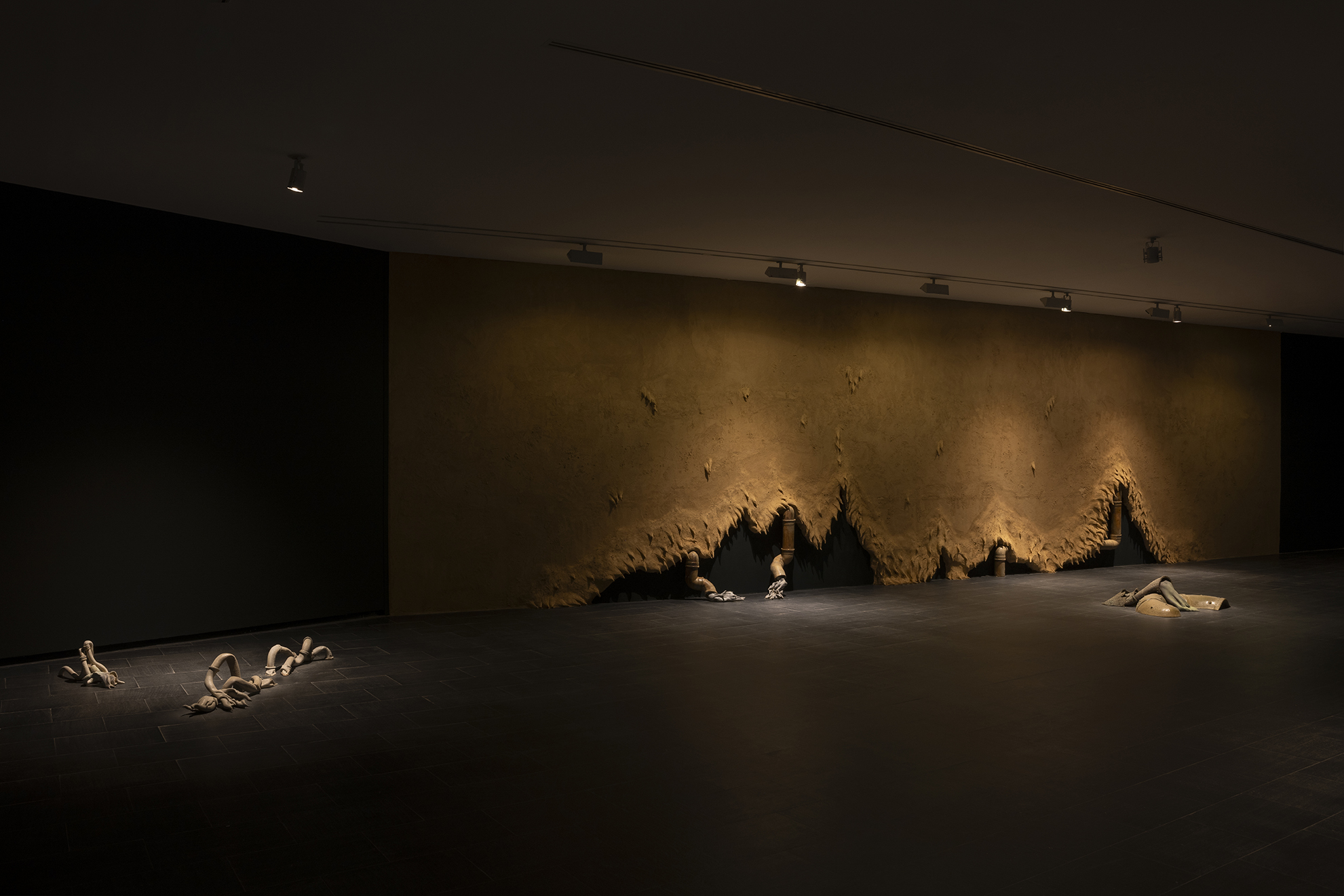 A través de un viaje subterráneo —que transita entre cuerpos, depósitos, sistemas de drenaje y fugas de agua—, la exposición nos invita a sentir los ritmos digestivos y respiratorios del agua dentro de nosotros. En un acto de afirmación visceral, Zenha nos lleva al subsuelo, a la garganta, revelando al monstruo que habla, al monstruo que siente.