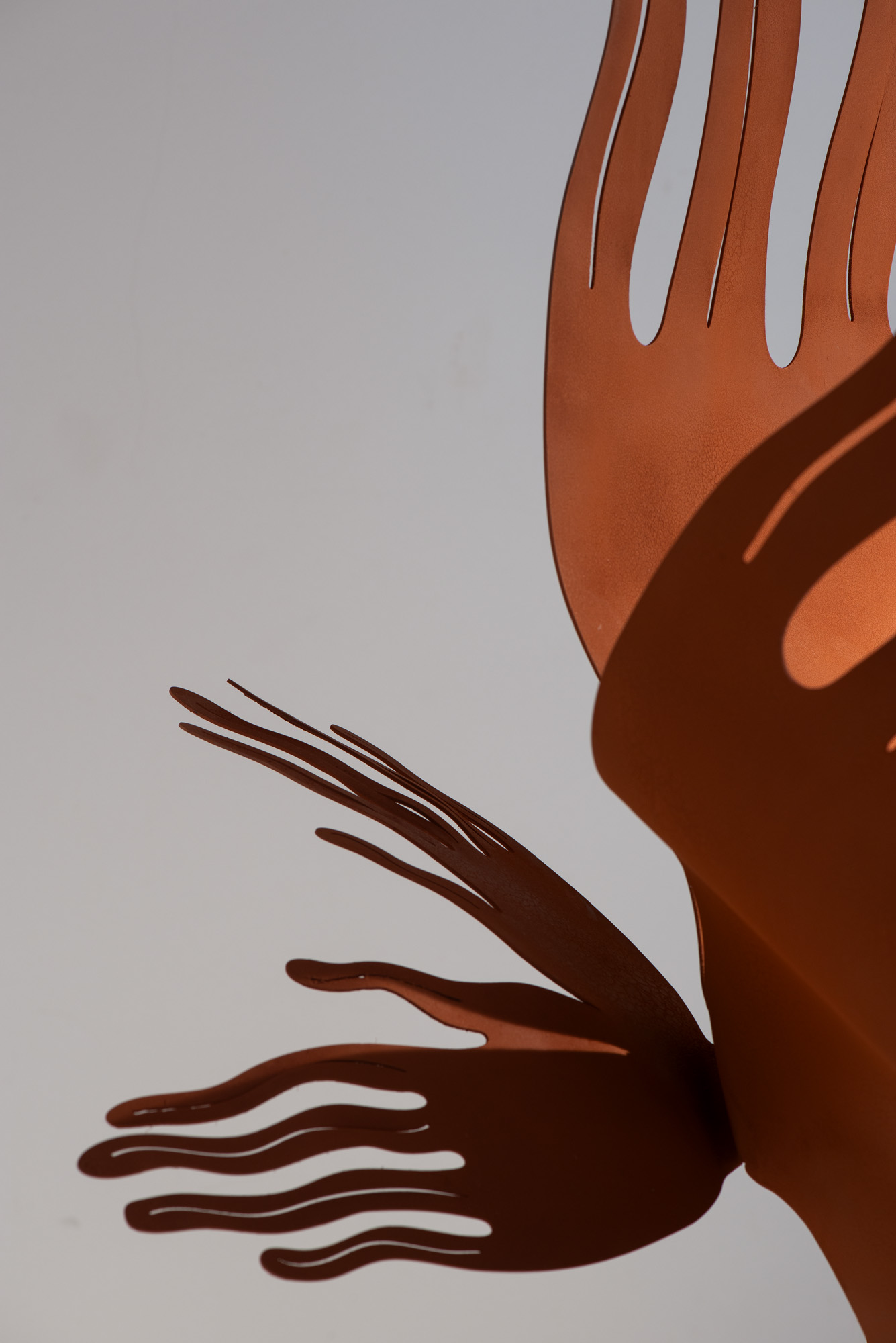 Las cuatro esculturas de esta instalación representan a la perfección el estilo escultórico de Ramiro Oller, que juega con la abstracción y la tridimensionalidad en sus piezas. Realizadas en latón y esmalte sobre acero, reflejan su propia forma y se camuflan en el ambiente, creando un efecto que hace que a veces parezcan desaparecer. Son como un "recorte" en el espacio que se ve y desaparece intermitentemente.